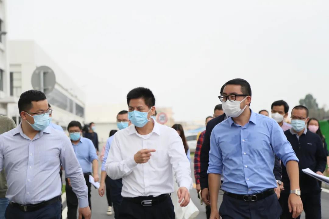 彭聪恩区长一行首先视察正在建设的生产车间,对星空电竞环境的业务领域、产业园的整体规划、生产车间及产品线布局等进行了详细的了解。