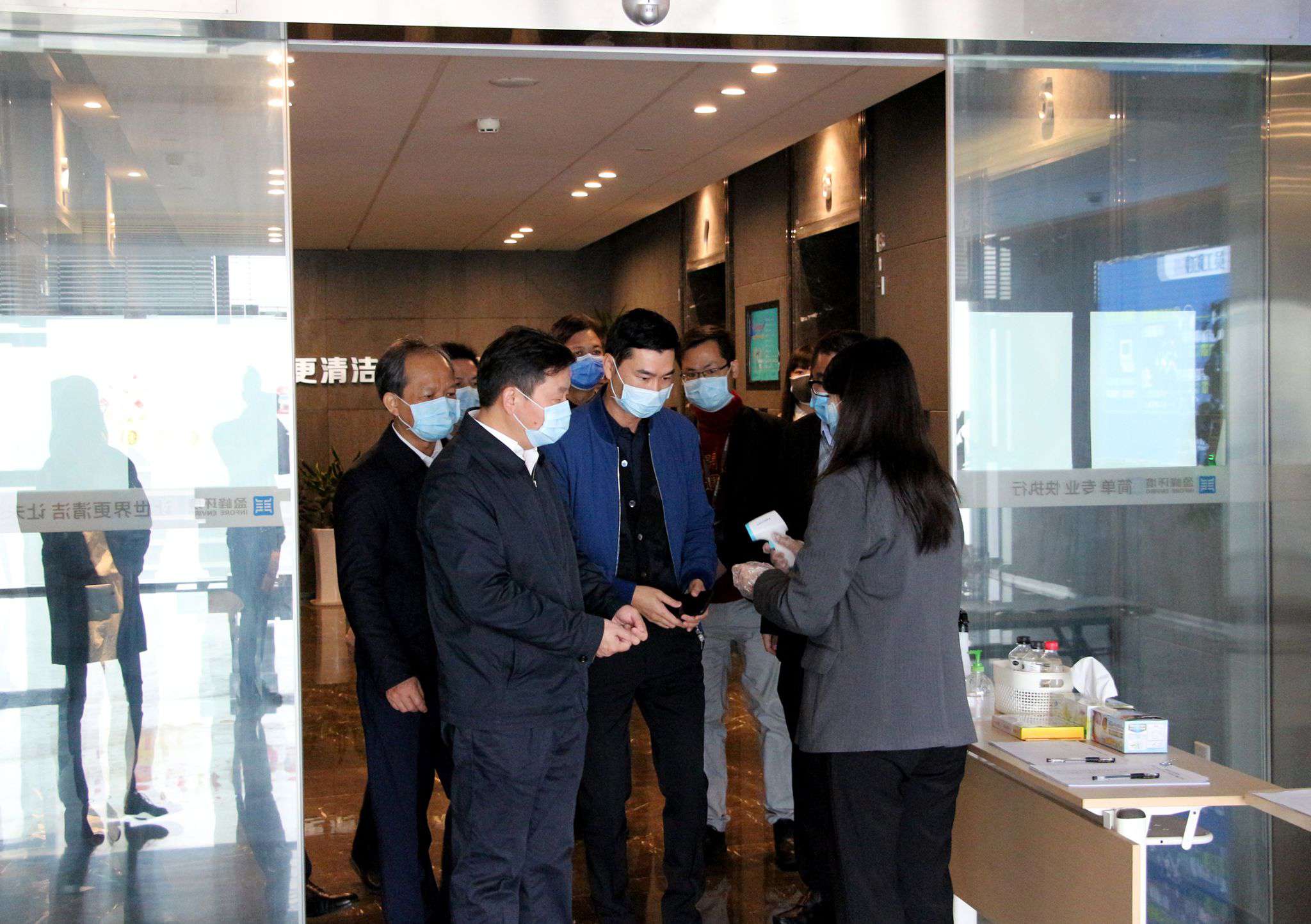 朱伟市长一行到达星空电竞环境,首先配合星空电竞环境的体温检测岗经过了严格的测量后,进入到企业办公区、会议室等区域,就企业的防疫物资、防疫制度文件、员工信息登记台账等情况进行了全面的调研与检查。